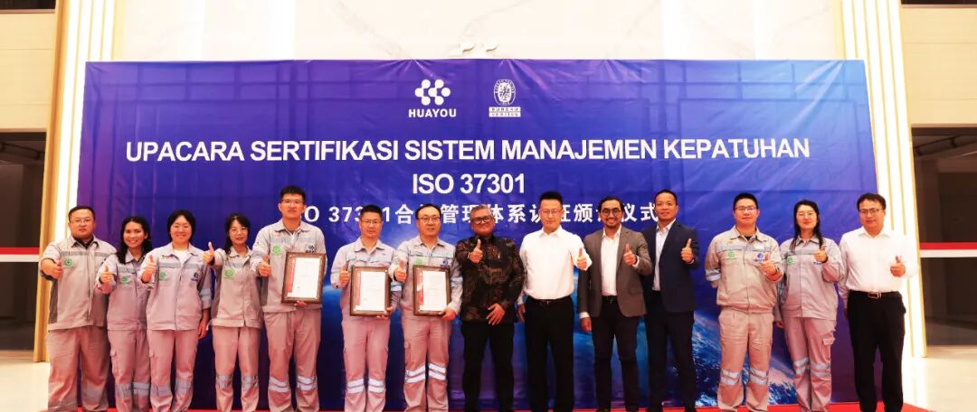 On September 12th, three Indonesian subsidiaries of Huayou Cobalt—Huafei Nickel Cobalt (Indonesia) Co., Ltd., Huaxiang Refining Indonesia Co., Ltd., and Huaneng New Materials Co., Ltd.—received the ISO 37301 Compliance Management System Certification from Bureau Veritas. This marks Huayou Cobalt's full integration into international compliance standards for its new energy lithium battery material integrated industrial base in Indonesia, laying a solid foundation for global development.