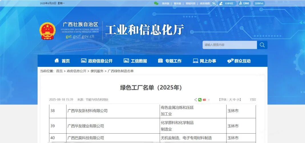 克日,, ,,,,,广西壮族自治区工业和信息化厅宣布2025年度广西绿色制造名单,, ,,,,,伟德官网广西园区三家企业——广西伟德官网新质料有限公司、广西伟德官网锂业有限公司、广西巴莫科技有限公司同时入选绿色制造工厂,, ,,,,,彰显了伟德官网在绿色制造领域的卓越成绩和坚定允许。。。。。。